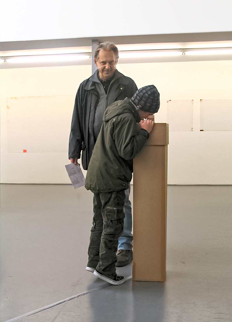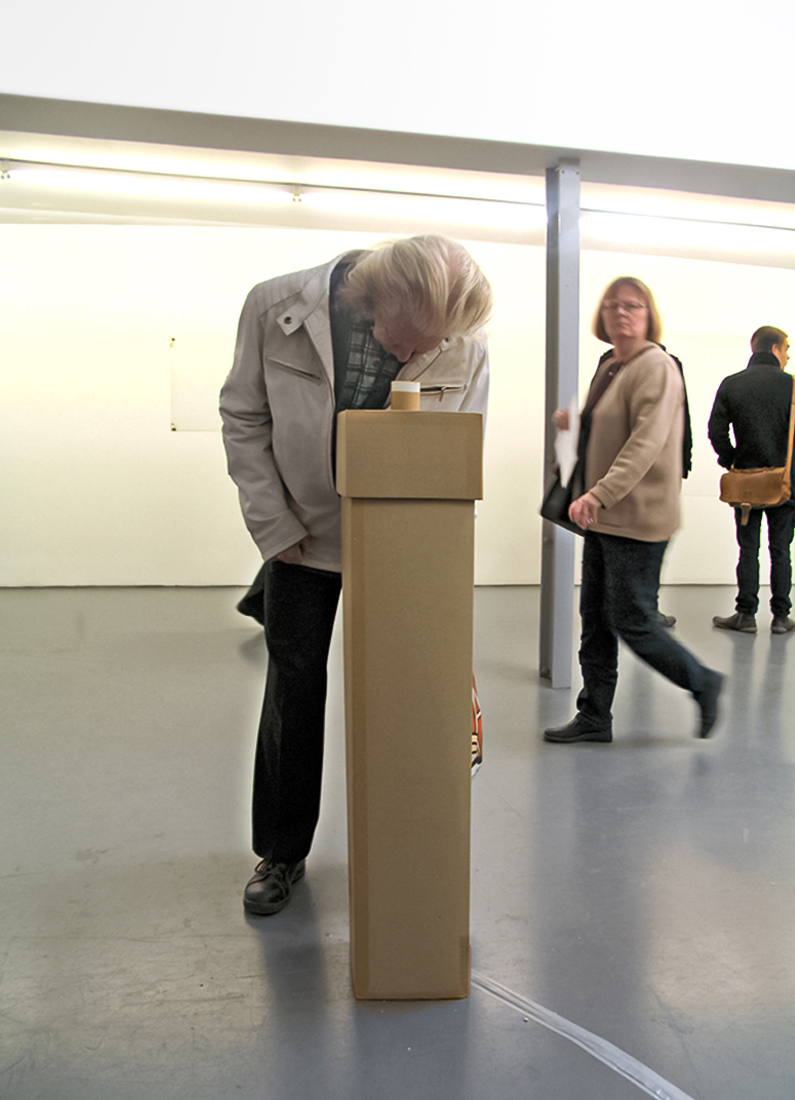 Material: wood, metal, papertubes, cardboard, LCD screens with videoloops (each 7 min)